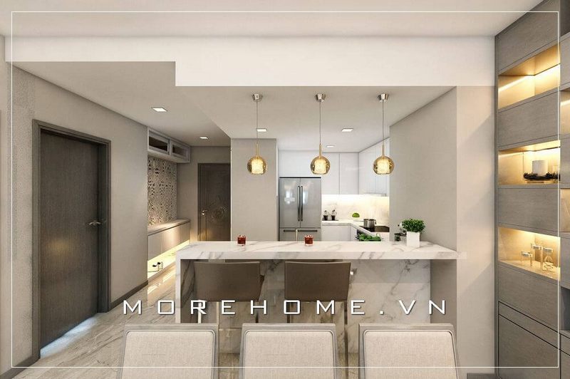 Thiết kế nội thất phòng bếp chung cư hiện đại, sang trọng.